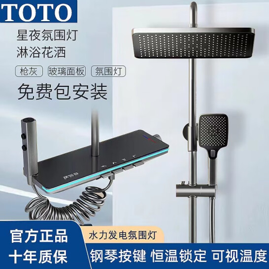 TOTO智能家居TOTO淋浴花灑套裝槍灰色全銅數顯恒溫增壓浴室衛生間 雅灰色-恒溫版-包安裝